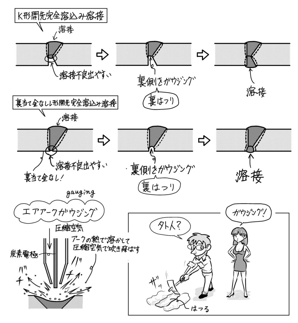 溶接欠陥が発生した場合もガウジングで除去しますが