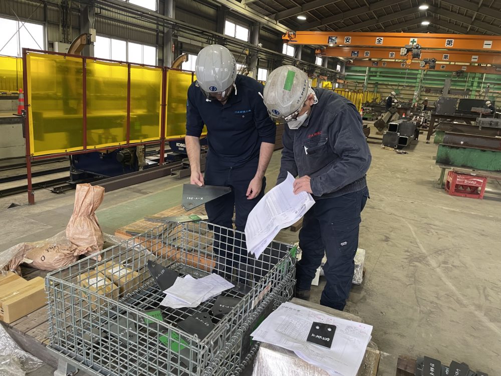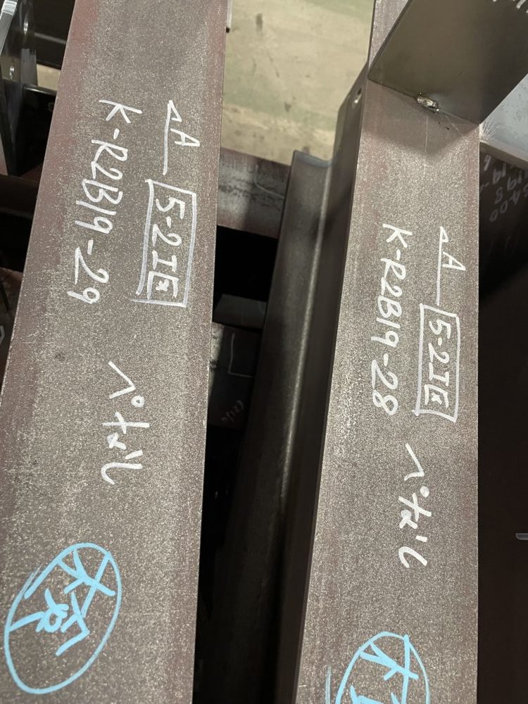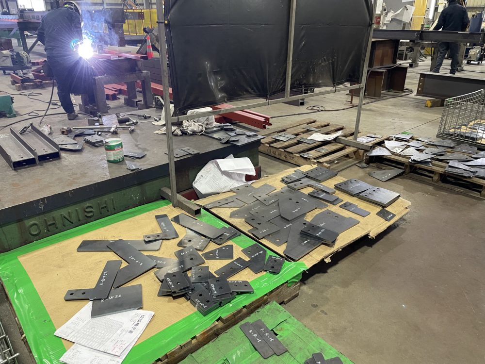 弓ちゃん管理の梁組立てエリアでは部品の出店状態