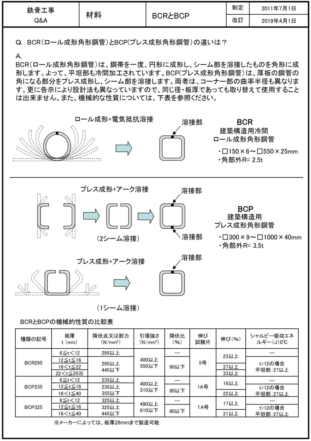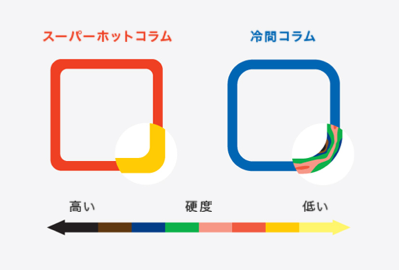 左がBCPで角部R=3.5t そうBCPの角は丸い