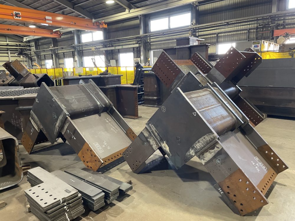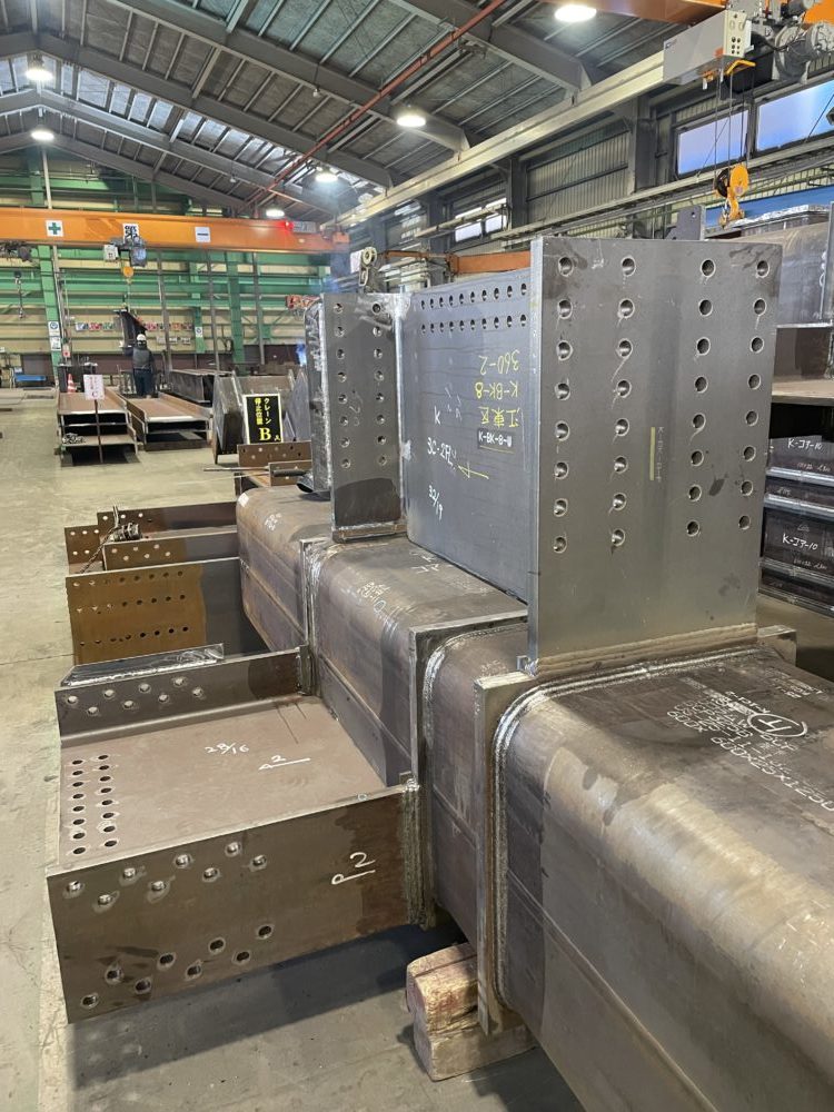 中ヤードでは大梁のスプライス取付やってます