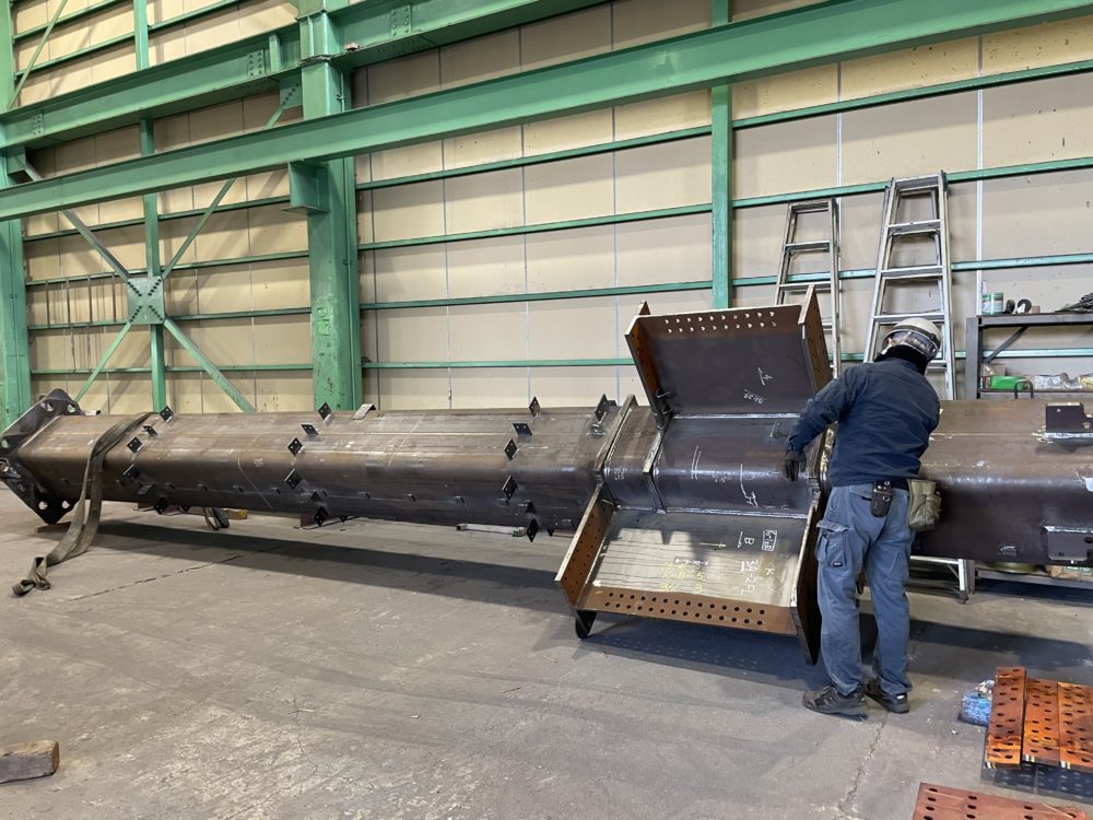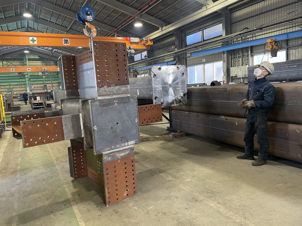 塩崎課長がUT検査してるこの柱も重そう・・